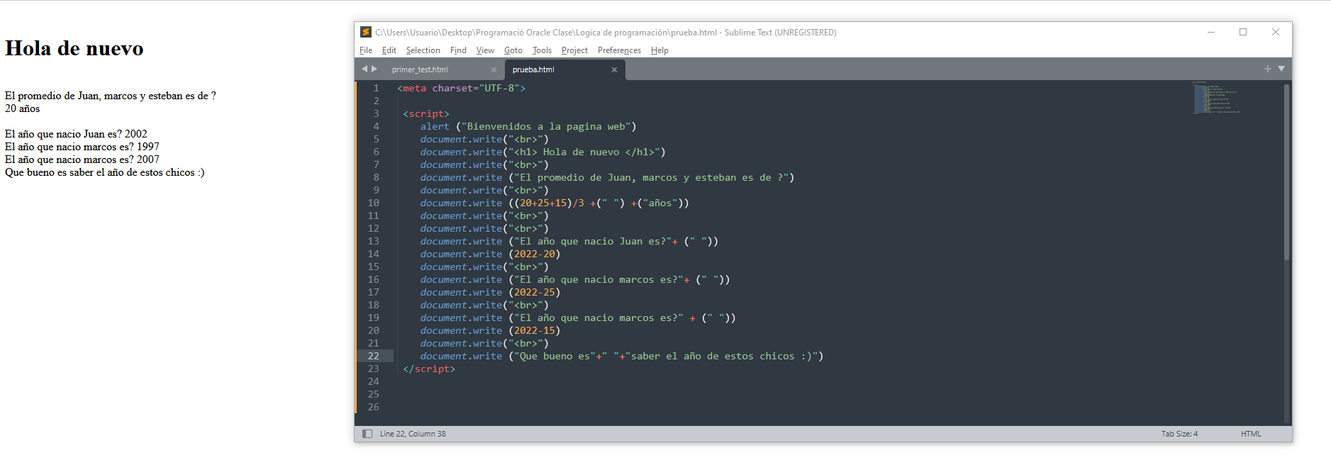 Me di cuenta que al unir 2 palabras ej: "document.write ("Que bueno es" +" "+ "saber el año de estos chicos") se puede dar un espacio con las comillas para que se vea mas prolijo y no quede junto todas la palabras.