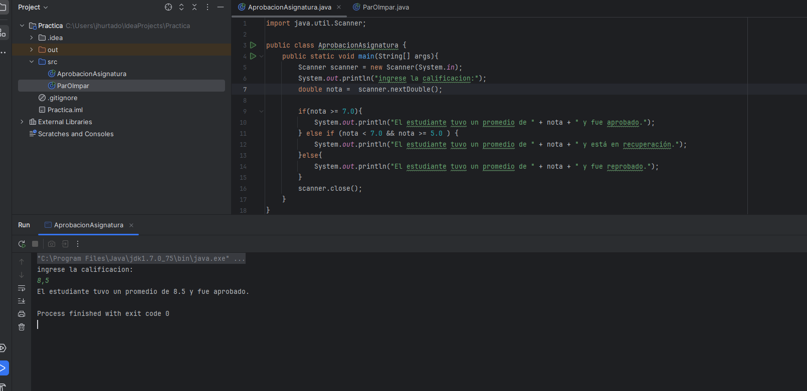 Referente al curso Practicando Java: condicionales con if/else, en el capítulo if/else y actividad Verificando aprobación en una asignatura